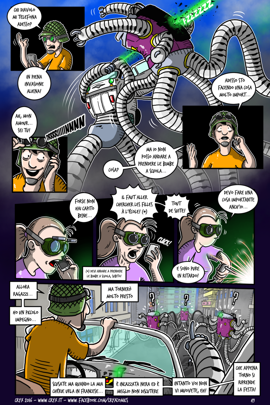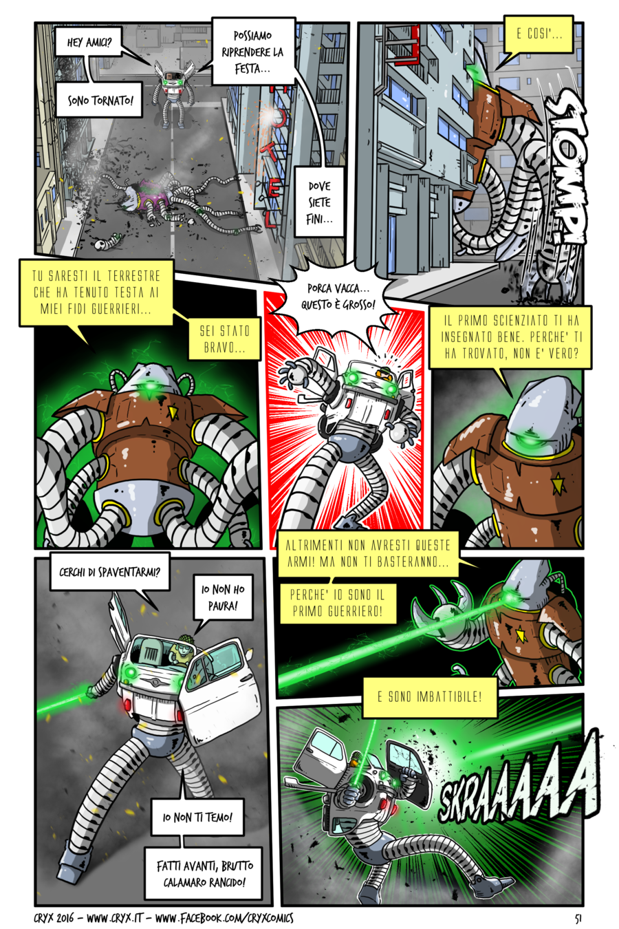 Anche per il fumetto in corso, L’ESPERIMENTO, ho tentato una strada nuova (alla fine del fumetto vi racconterò la genesi dello stesso). Non potendone più delle solite storielle sui computer, cellulari e altre menate informatiche, volevo misurarmi con qualcosa che si avvicinava ad altri generi. E’ così che m’è venuta in mente la folle idea della storia dell’invasione aliena e il resto