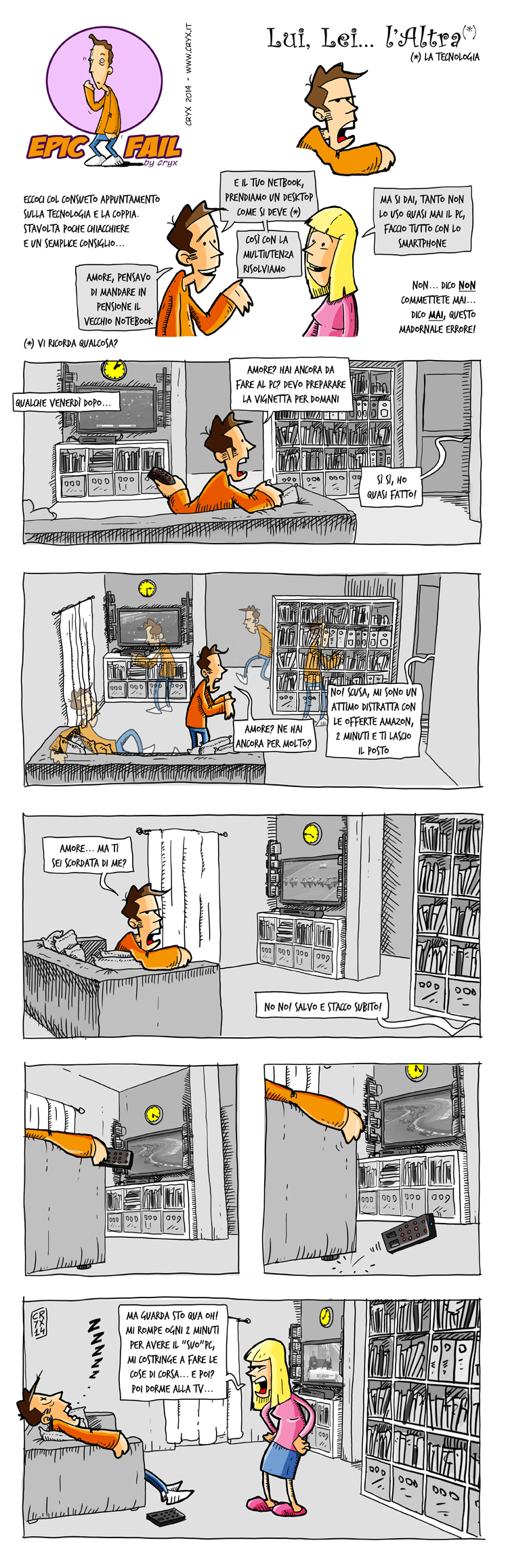 Lui, Lei, l’Altra… capitolo 2 I lettori di tom’s sono molto esigenti. La storia lunga pubblicata a inizio anno è risultata per molti troppo lunga. Dunque questa serie di vignette, pensata come storia a più puntate è stata spezzettata in varie vignette autoconclusive.