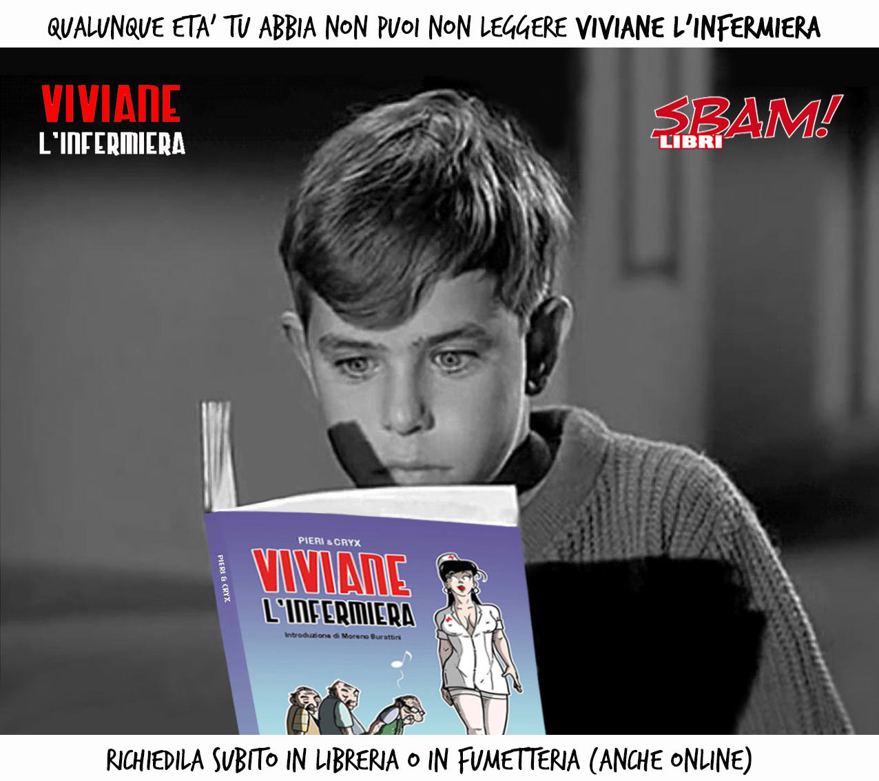 Era l’infermiera del ricovero per anziani Casa Nova e tutti la ricordano con grande nostalgia. Purtroppo però nessuno sa dove sia finita la dolce Viviane. Ecco perché ora che Macao, uno degli anziani ospiti della residenza, è in fin di vita, i suoi attempati (ma battaglieri) compagni decidono di partire alla ricerca della fanciulla, così che possa dare conforto allo sfortunato amico… Questa nuova avventura firmata dal duo Pieri & Cryx prende l’avvio dal finale del precedente volume Viviane l’infermiera (proposto da Sbam! nel 2018), ma se ne discosta in una trama del tutto autonoma: un graphic novel spassosissimo, strapieno di citazioni della grande commedia all’italiana, dalla indimenticabile commedia sexy degli anni Settanta, alla trilogia di Amici miei (non a caso i due autori sono toscani), passando per altri classici passati e recenti di grande cinema umoristico.